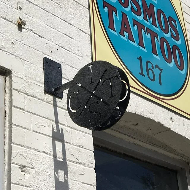 Logo was created from an artist’s napkin drawn design and brought to life. It was cut, fabricated and welded, then sent out for outdoor grade powder coating, and finally, installed by us.